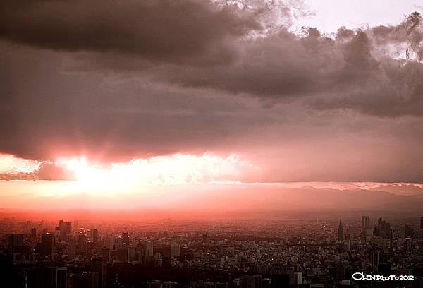 這裡的天氣很特別,一片烏雲,但又有很強烈的陽光透射出來,照射整個城市