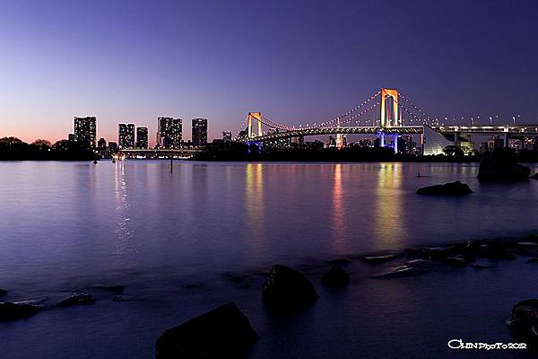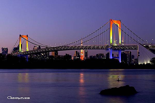 今天的重頭戲,夜拍彩虹橋(會想到賽德克巴萊XDD),這張是從車窗中拍出去的